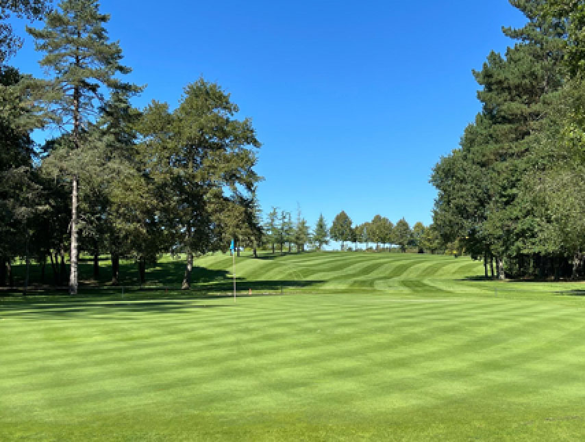 Campo llano de 9 hoyos de 2.803 m de extensión en 17 hectáreas, rodeado de robles, pinos y hayas.